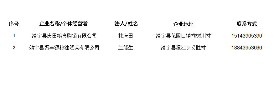 2025年度靖宇县诚信守法粮食经营者“白名单”