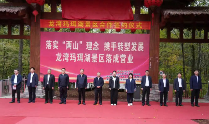 金秋时节,硕果飘香。9月28日,靖宇四海龙湾玛珥湖景区内气氛热烈,景区落成营业仪式在此举行。靖宇县委书记于淼,县委常委、常务副县长王鼎,县委常委、宣传部长朱传君,县文旅局、文旅集团、松花江旅游公司有关代表,江源森林公安分局、林区基层法院有关领导、景区施工方代表、三岔子林业有限公司领导班子及相关部门单位代表齐聚龙湾,共同见证这一重要时刻。