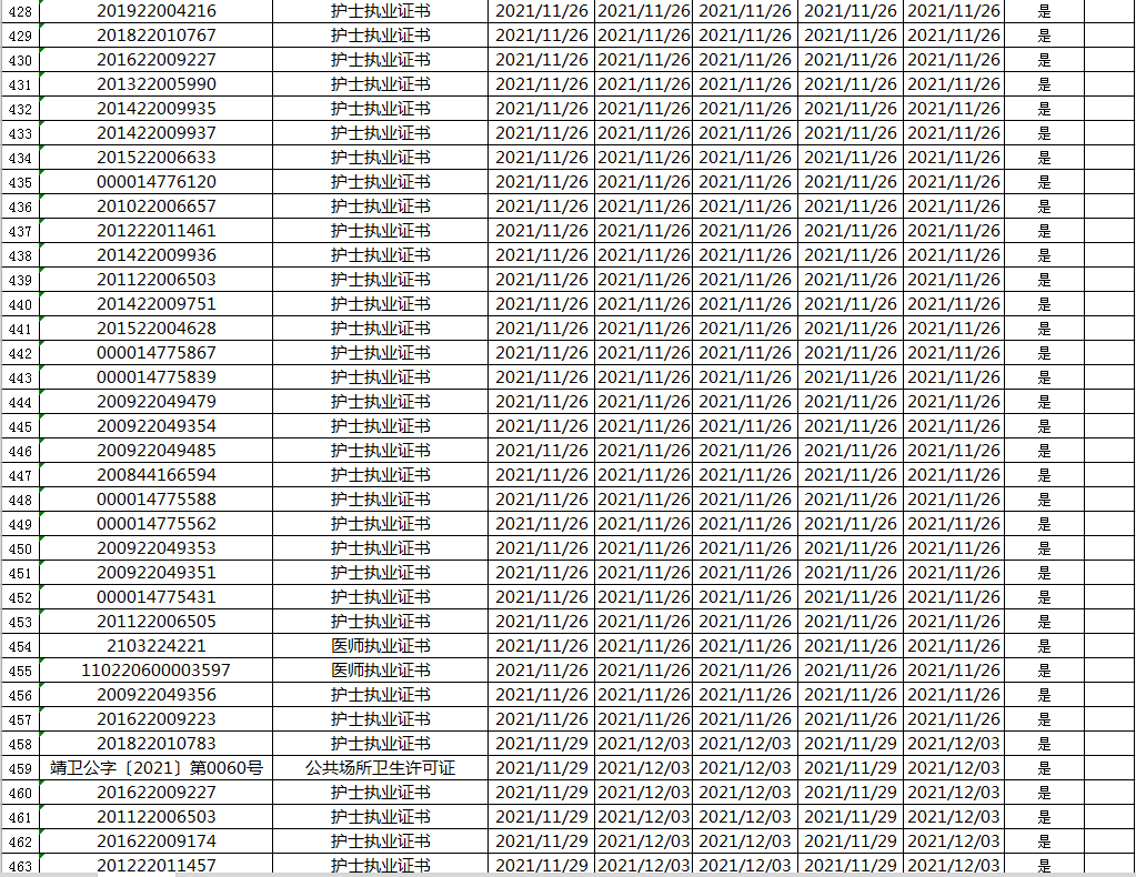 靖宇县卫生健康局(1-12月份)“省双公示”信息行政许可台帐