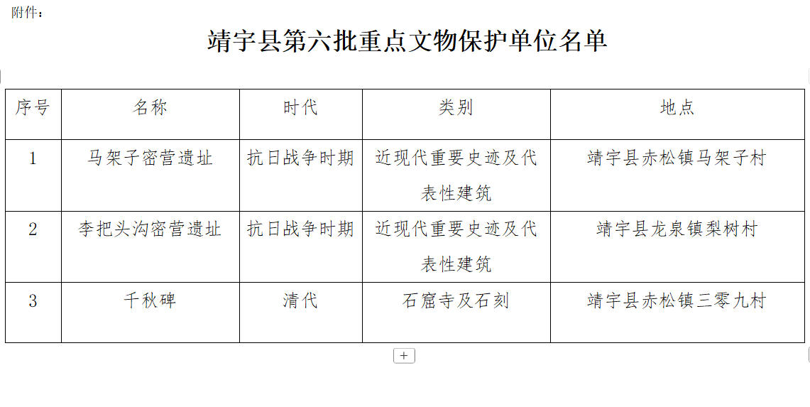 附件:靖宇县第六批重点文物保护单位名单